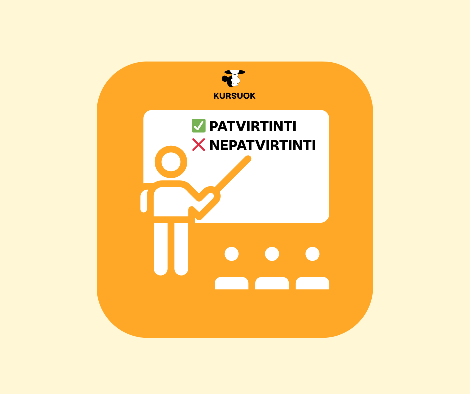Būtinai įvertink mokymus, gauk pažymėjimą ir ilgai džiaukis juo bei įgytomis žiniomis!
