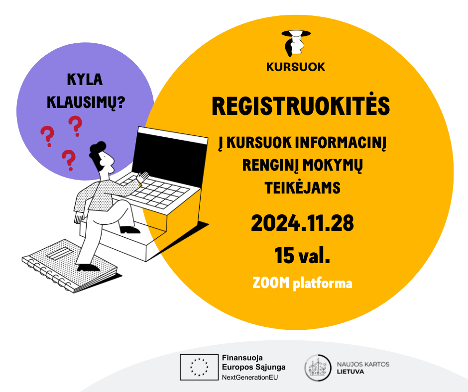 Šis renginys - puiki galimybė išgirsti naujausią informaciją apie KURSUOK platformą, sužinoti veikimo principus, reikalavimus, ir sulaukti atsakymų į rūpimus klausimus tiesiai iš ekspertų.