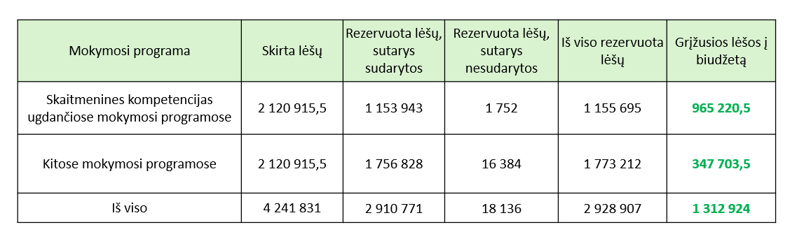 Kaip rašėme anksčiau, finansavimo konkursas iš esmės vyko tarp dalyvių, pasirinkusių ne skaitmenines kompetencijas ugdančias programas.