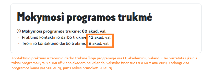 Valstybė apmoka kontakftinio darbo valandas pagal nustatytus įkainius, tad atkreipkite dėmesį, iš ko susideda mokymų programa.